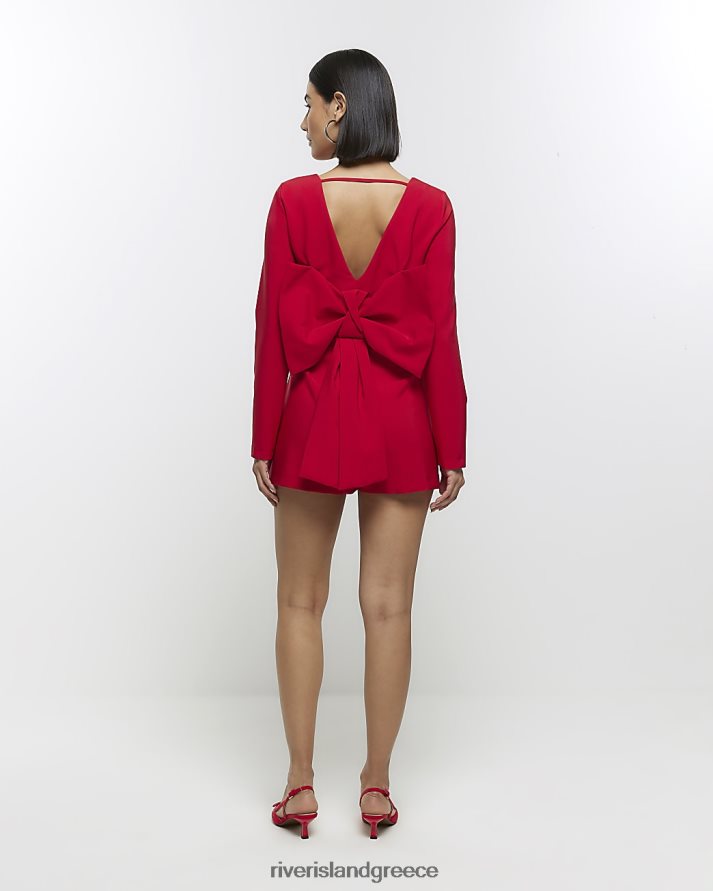 River Island ενδύματα το κόκκινο γυναίκες φιόγκο μπλέιζερ playsuit B6N8X21