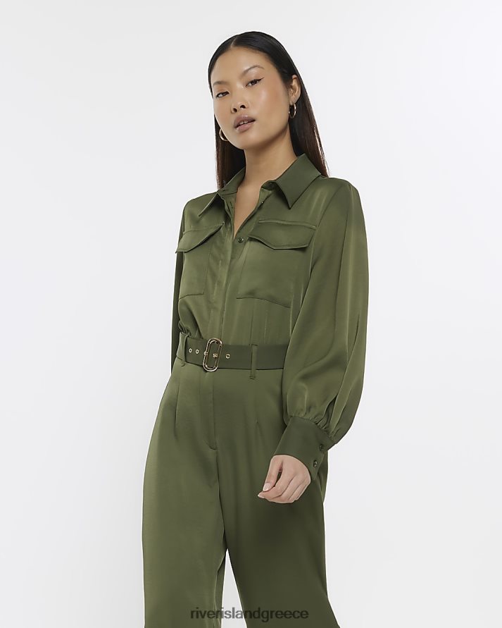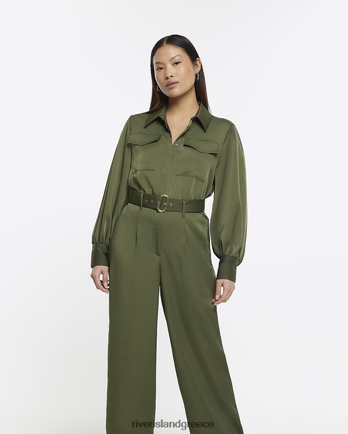 River Island ενδύματα χακί γυναίκες μικροκαμωμένη φόρμα με ζώνη με φαρδύ πόδι B6N8X5309