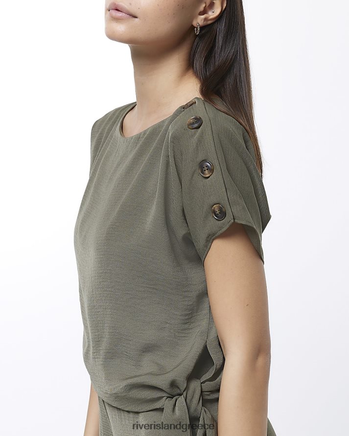 River Island ενδύματα χακί γυναίκες ολόσωμη φόρμα με κοντό μανίκι B6N8X1860