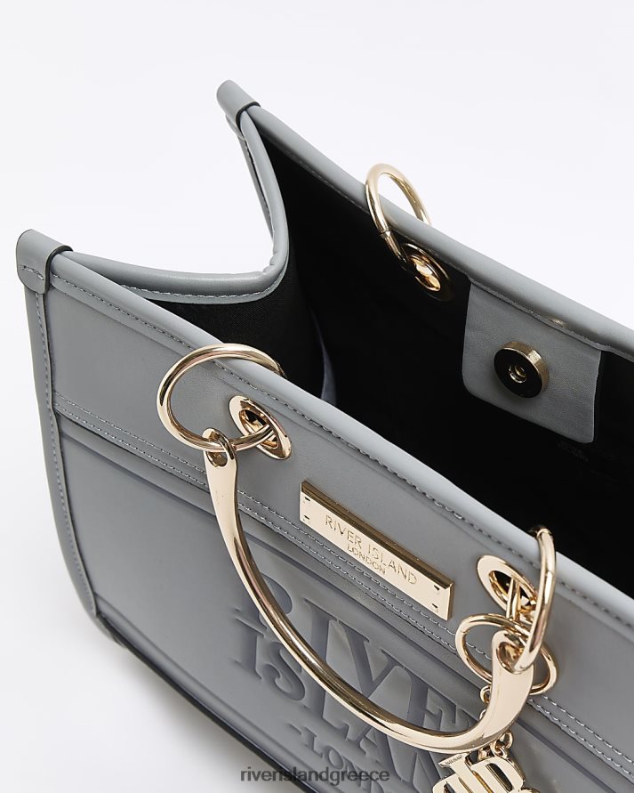 River Island αξεσουάρ γκρί γυναίκες ανάγλυφη τσάντα ri tote B6N8X3794