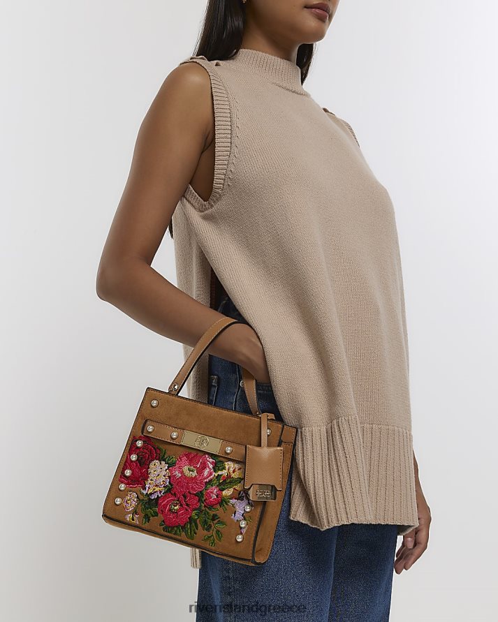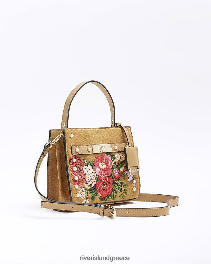 River Island αξεσουάρ καφέ γυναίκες Σουέντ κεντημένο φλοράλ τσαντάκι B6N8X4461