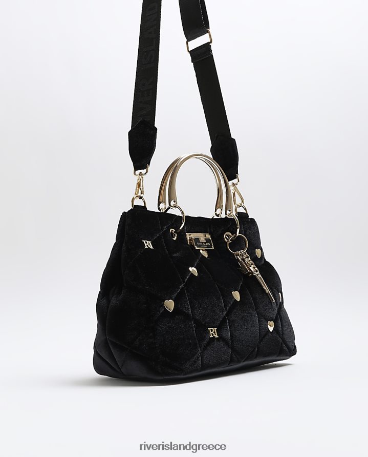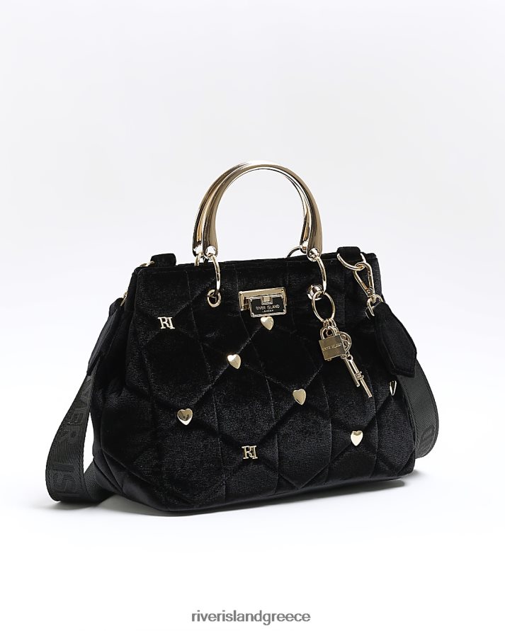 River Island αξεσουάρ μαύρος γυναίκες βελούδινη τσάντα καρφίτσας καρδιάς B6N8X213