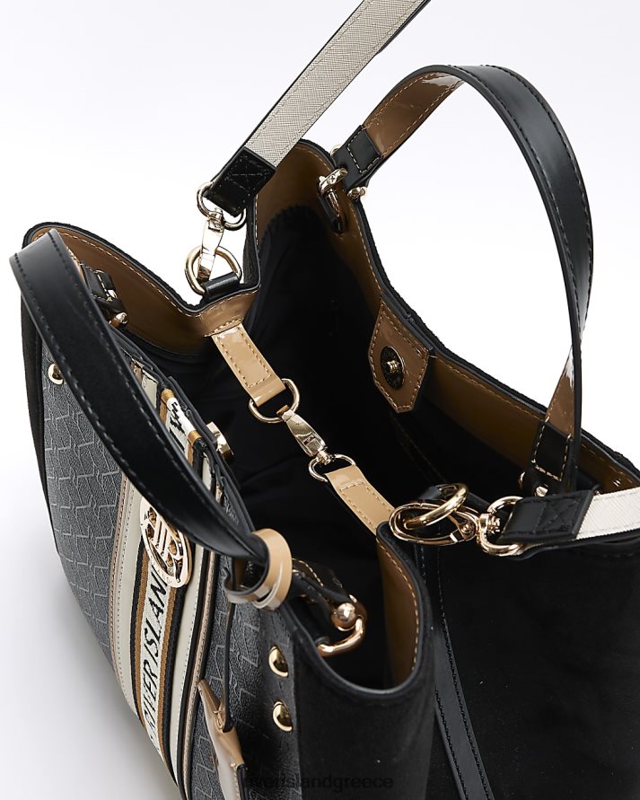 River Island αξεσουάρ μαύρος γυναίκες ri μονόγραμμα ιμάντες tote bag B6N8X4150